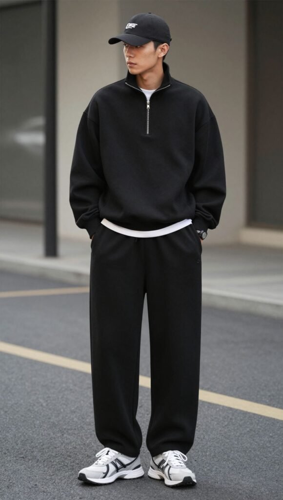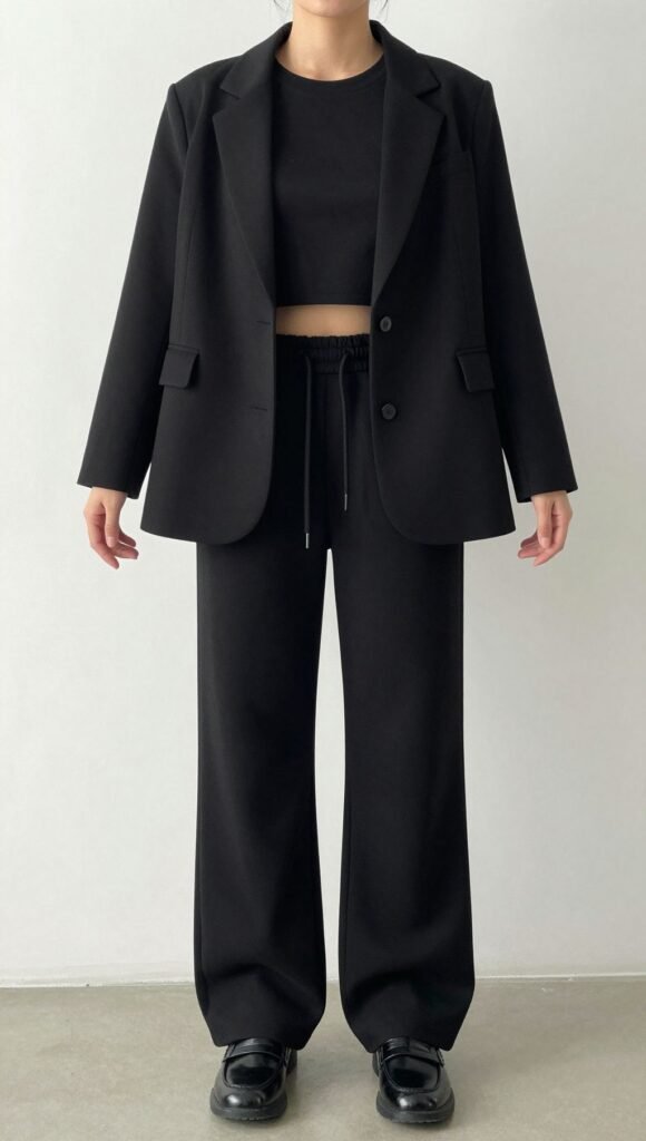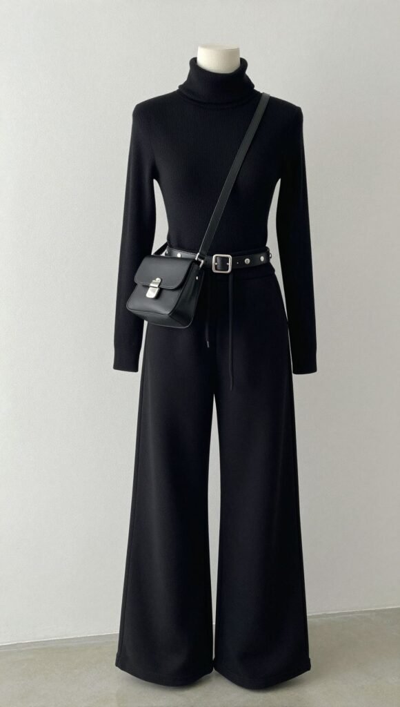 Black wide leg sweatpants can do it all—coffee runs, desk days, even dinner. Mix structure on top, keep footwear intentional, and you’ve got endless low-effort high-reward fits. Cozy stays on, style level stays up. Win-win.