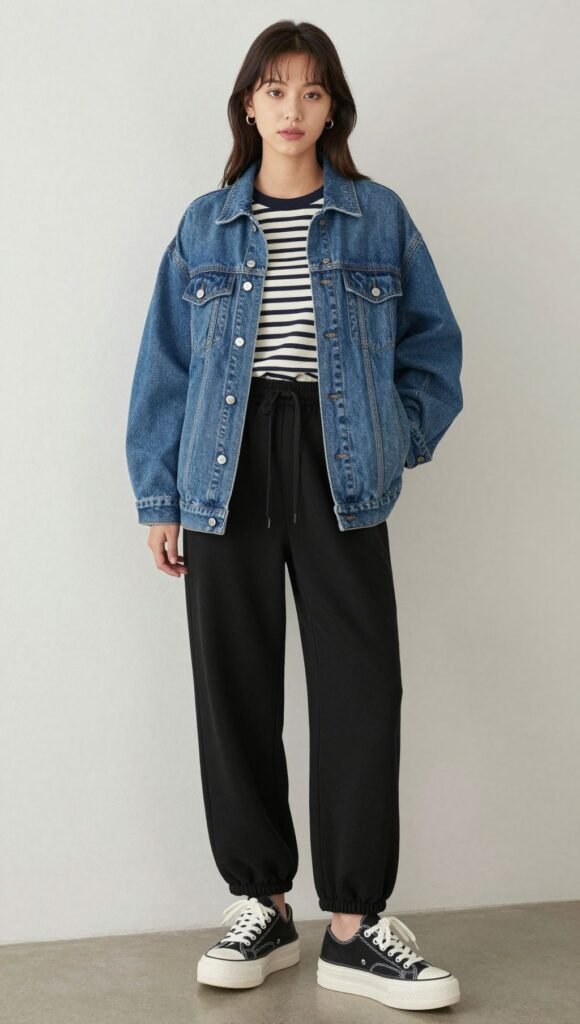 5. Oversized Denim Jacket and Platform Sneakers