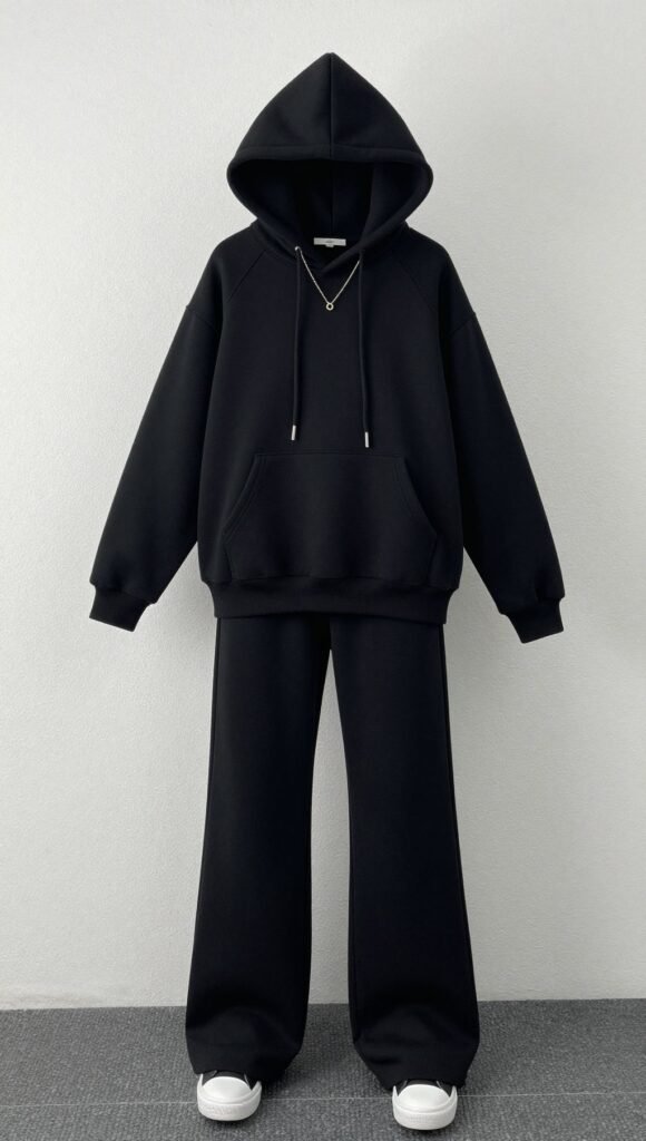 8. Matching Hoodie Set With Minimalist Jewelry