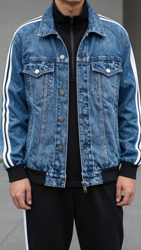 Pro tip Keep colors complementary—navy track jacket under mid-wash denim is a win.
