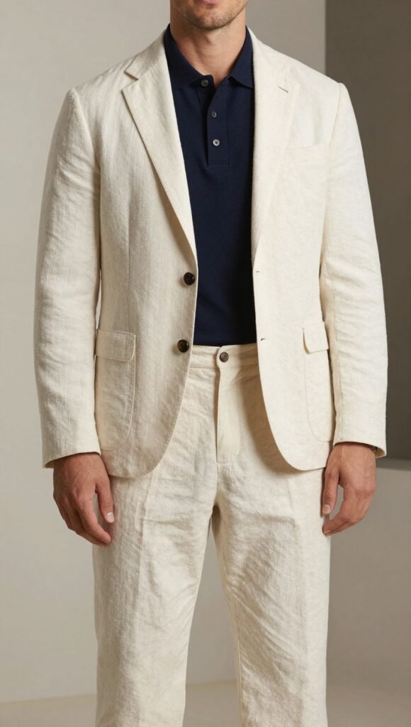 Date night hero move. A unstructured blazer over a tee or polo with cream linen pants looks refined with zero sweat.