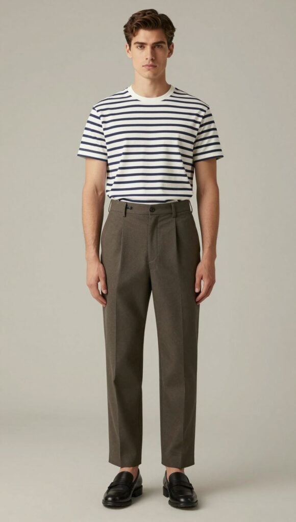 Choose a tee with clean, narrow stripes. Add loafers or minimal sneakers.