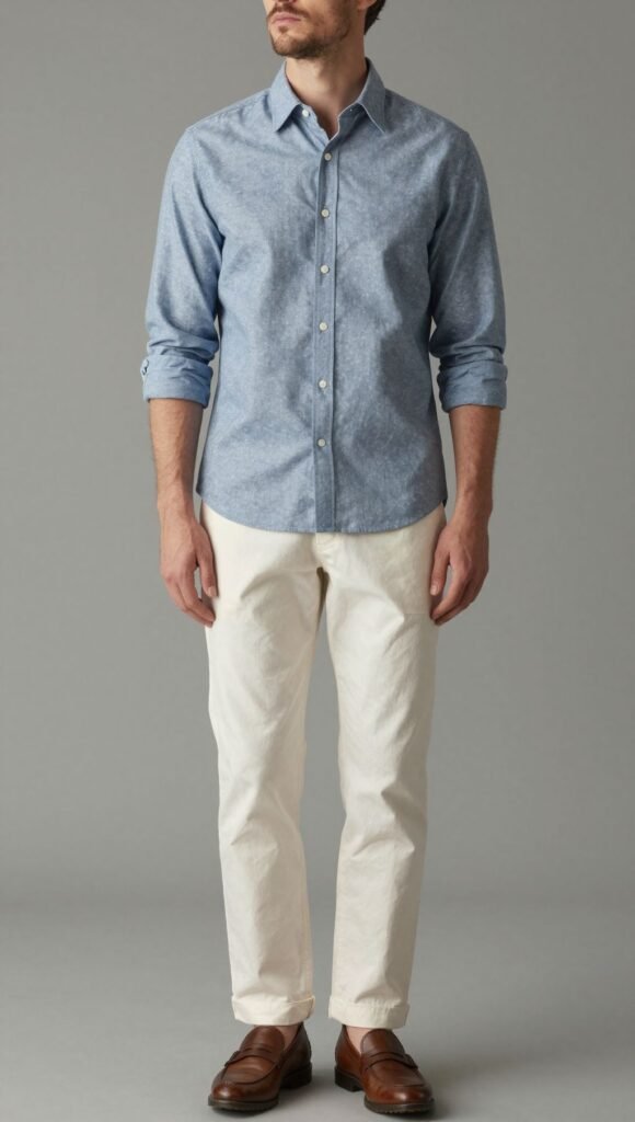 12. Chambray Shirt with Cream Pants