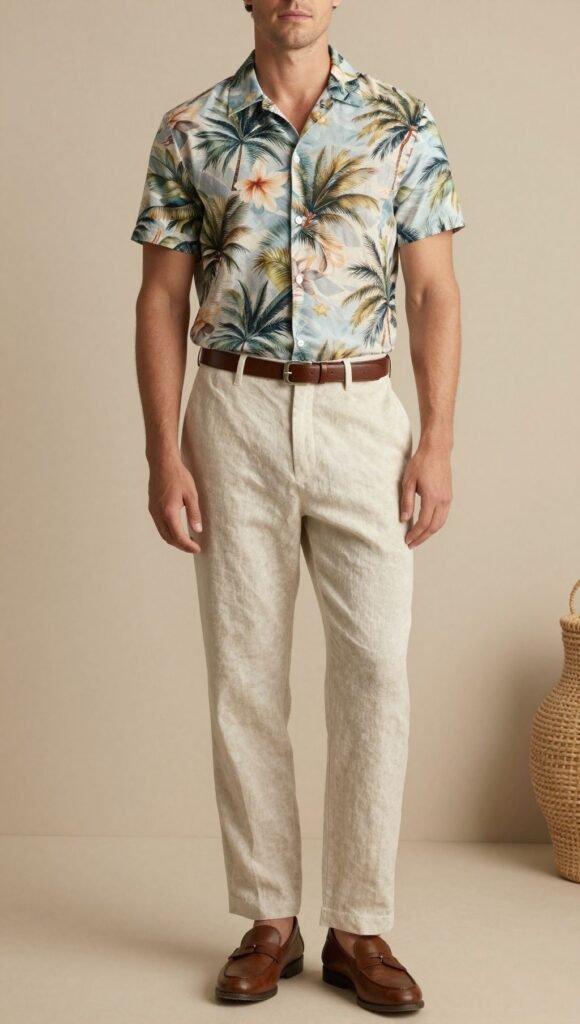 13. Tropical Print with Linen Pants