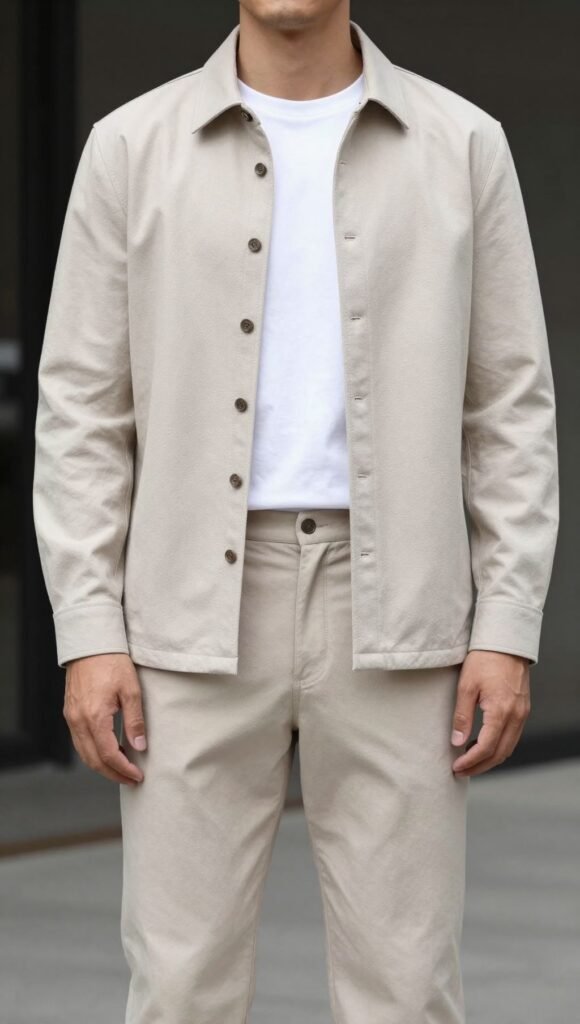 Opt for twill or lightweight wool overshirts. Neutral palette keeps it clean.