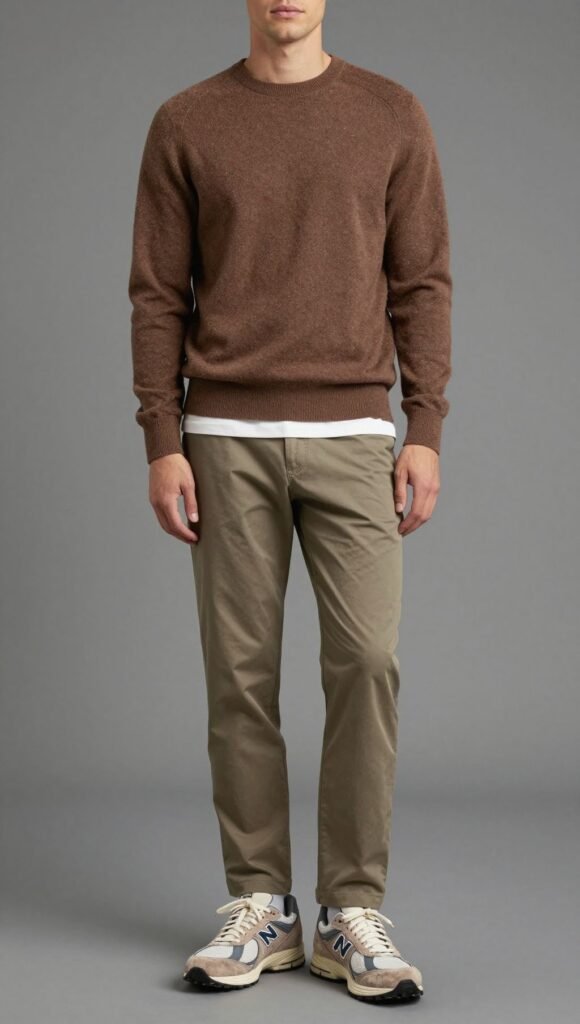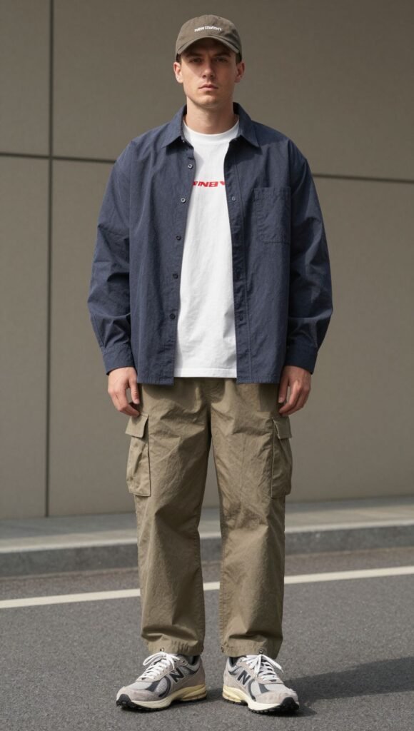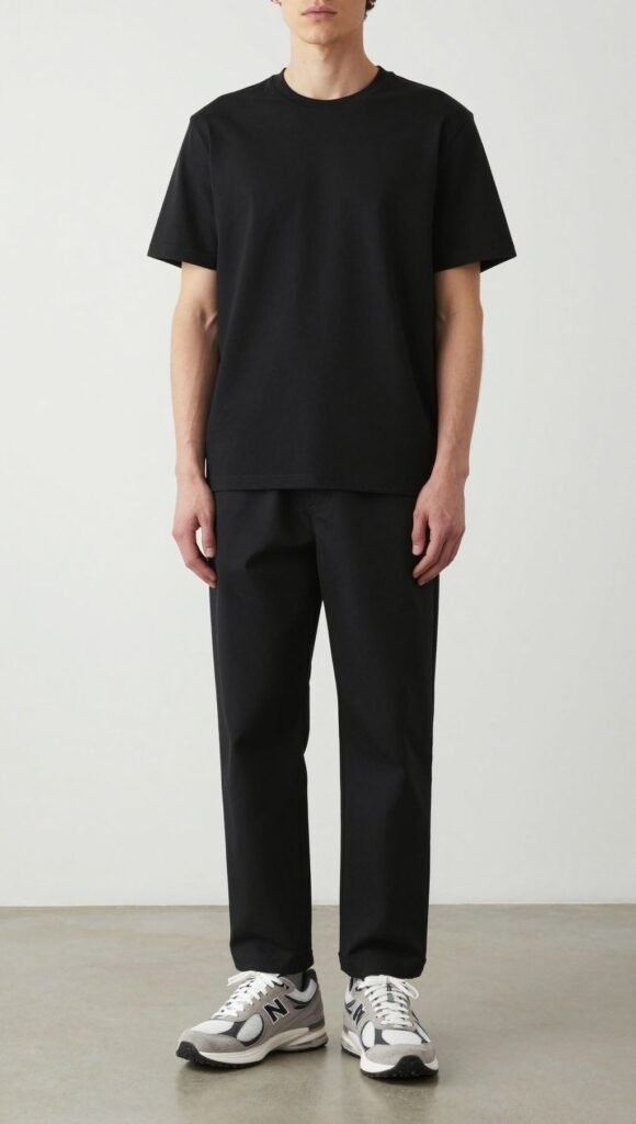Pro tip: Vary fabrics—cotton tee, twill pants, suede or mesh on the shoes—for depth.