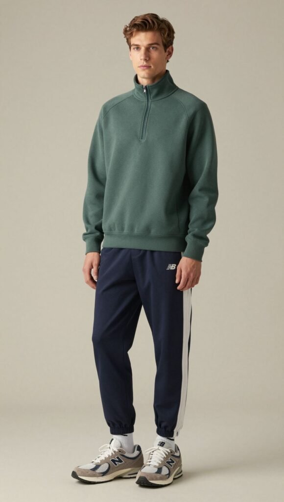 Lean into vintage athletic. Go quarter-zip sweatshirt, track pants, and retro socks. The 2002R nods to old-school running style.