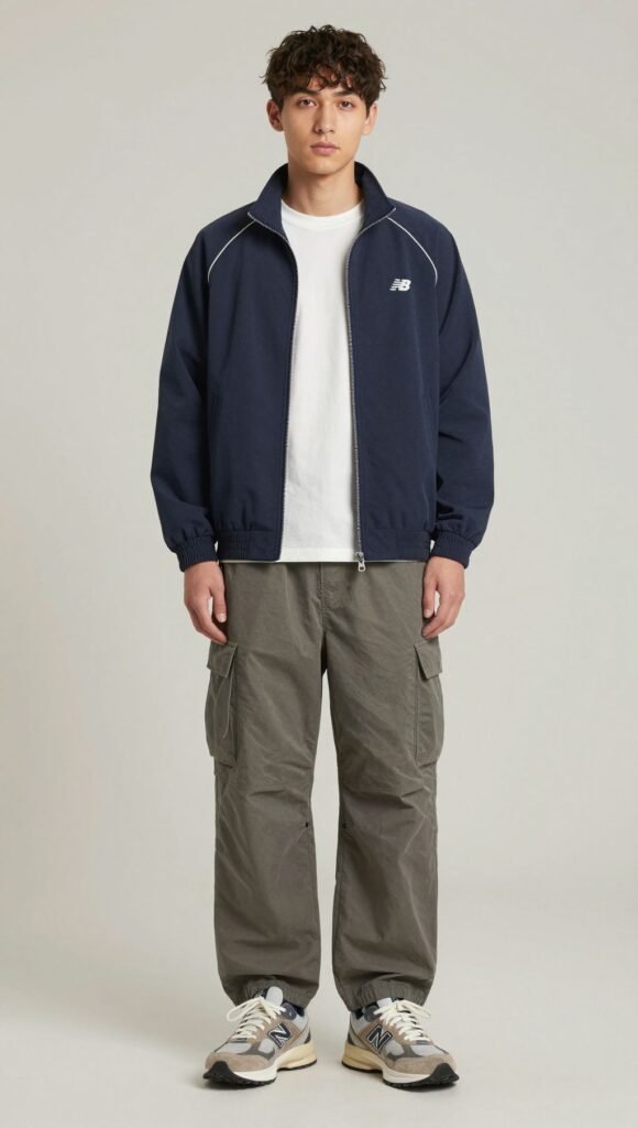 Blend comfort and edge with a track jacket, relaxed cargos, and your 9060. Think weekend errands that turn into a casual hang.