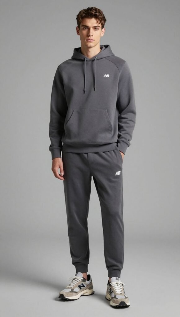 Upgrade lounge mode: tailored joggers, a clean hoodie, and 9060. Minimal logos, maximum comfort.