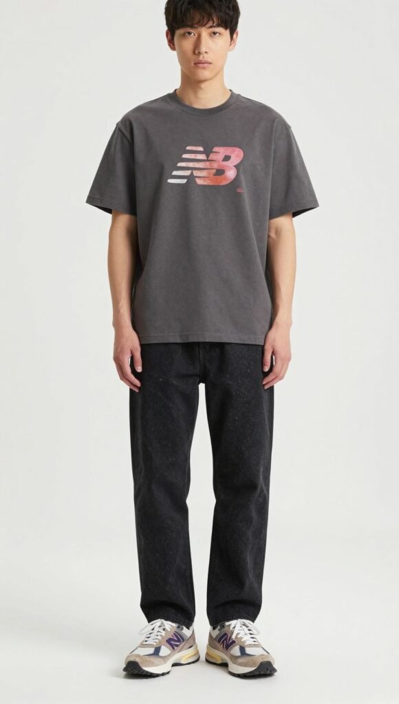 Go black tee, black cargos, and black 9060, but mix ribbed, matte, and woven finishes. Ninja, but stylish.