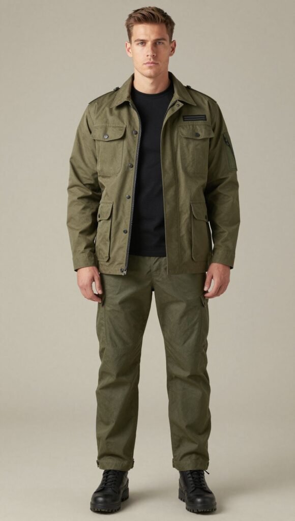 Choose a jacket in khaki or dark olive for tone-on-tone depth. Keep logos off.