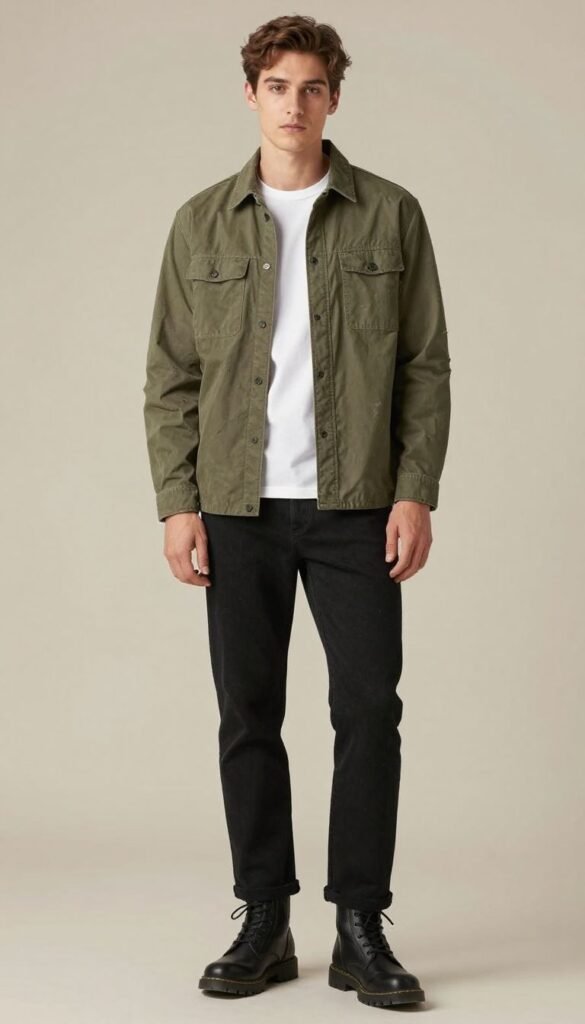 4. Olive Utility Shirt + Black Jeans