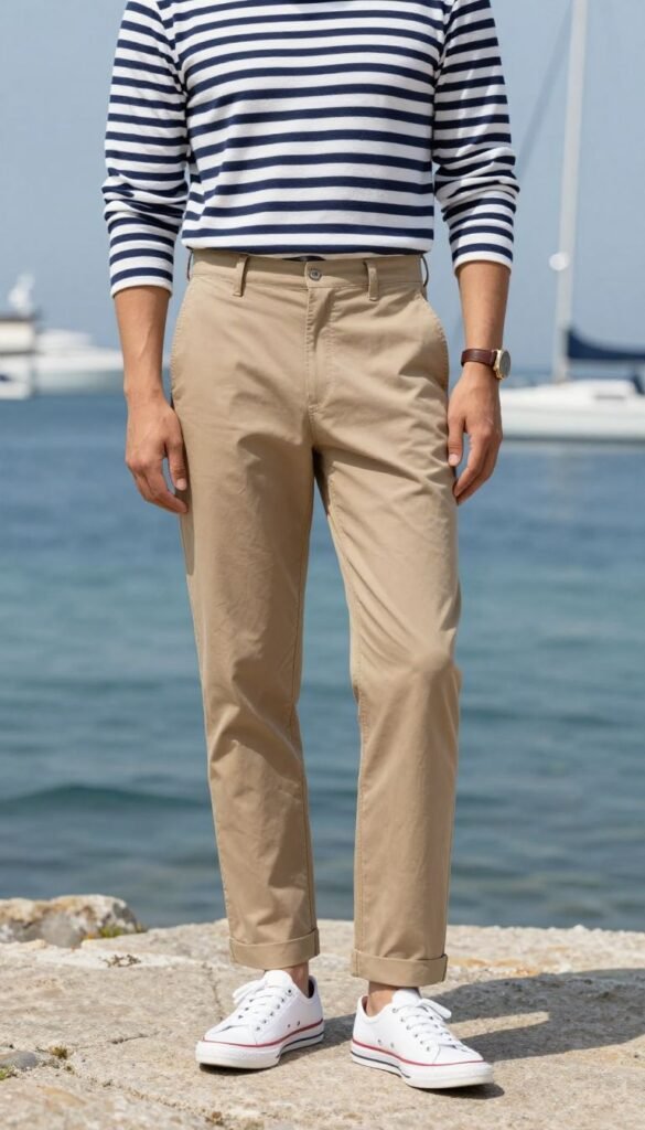 5. Striped Breton Shirt + Tan Chinos