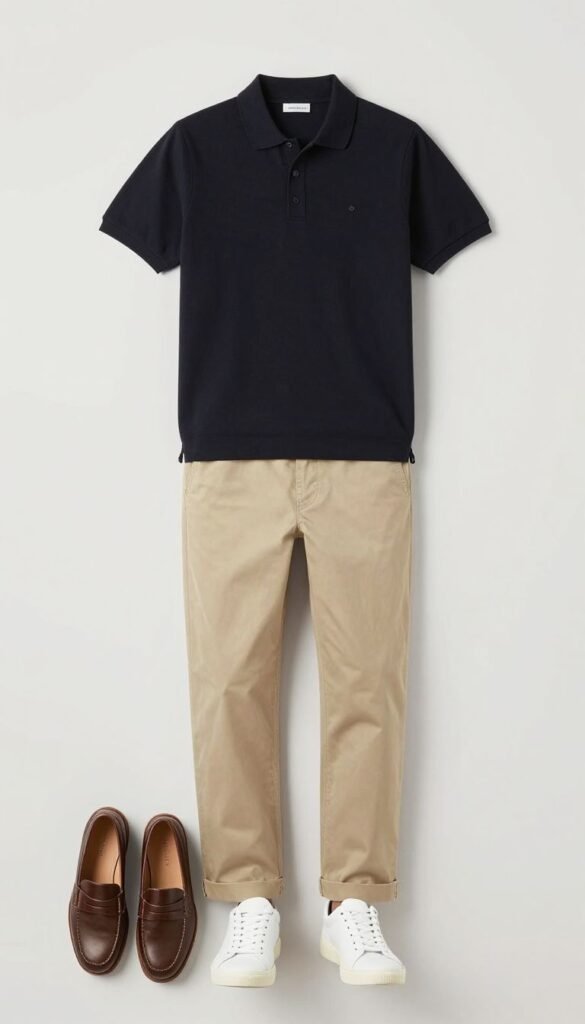 7. Black Polo + Khaki Chinos