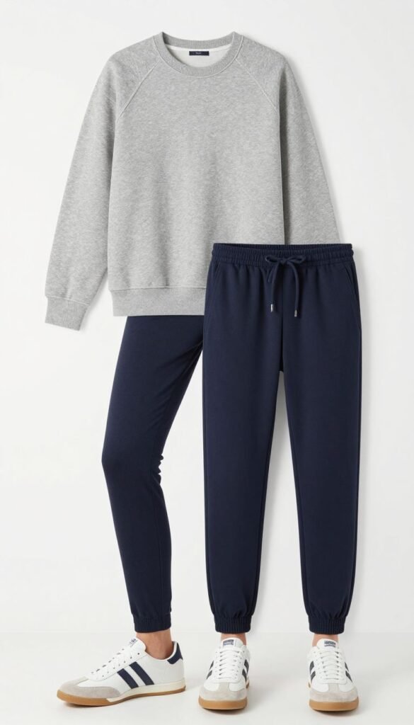 8. Grey Crewneck Sweatshirt + Navy Joggers