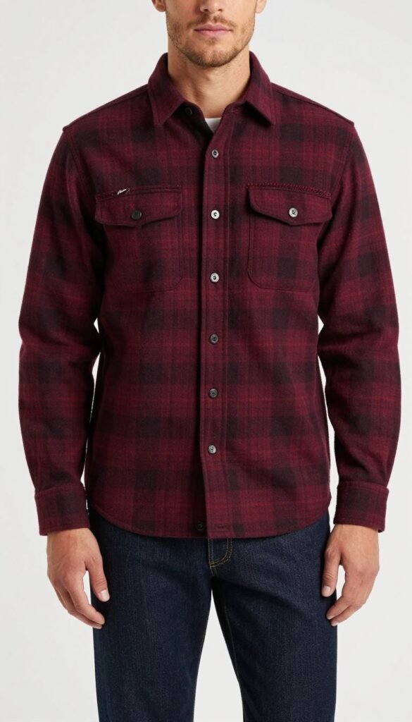 10. Burgundy Flannel + Dark Indigo Jeans