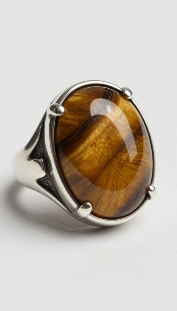 Unleash your inner beast with a silver ring featuring a bold tiger’s eye stone. Its rich brown and gold bands shimmer with a captivating chatoyancy, looking just like a tiger’s eye. This isn’t just a ring; it’s a declaration. It’s got a grounded, protective energy that just feels good. Pro tip: Let this be your statement piece; keep other accessories minimal. It’s got enough swagger for two hands.