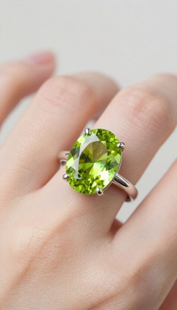 Break away from the usual with a silver ring featuring a bright, lively peridot stone. Its vibrant, almost neon green hue is unexpected and incredibly fresh. It’s like a tiny burst of spring on your finger. This gem is perfect for adding a pop of color that feels both modern and natural. Pro tip: Don’t shy away from pairing this with lighter fabrics or even pastel shirts. It’s a breath of fresh air for your hand.