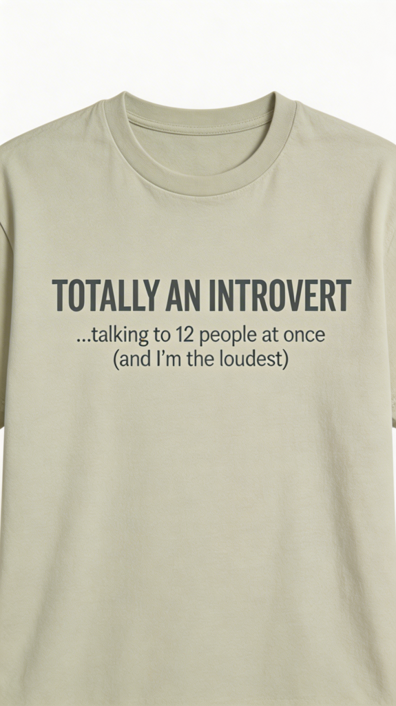 Wear it while you talk to 12 people at once. The joke sells itself when you’re the loudest in the room.