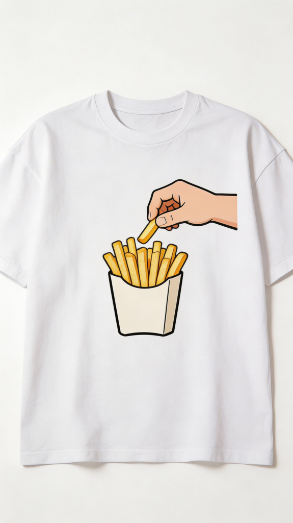Famous last words. This tee warns friends their fries are public domain now.